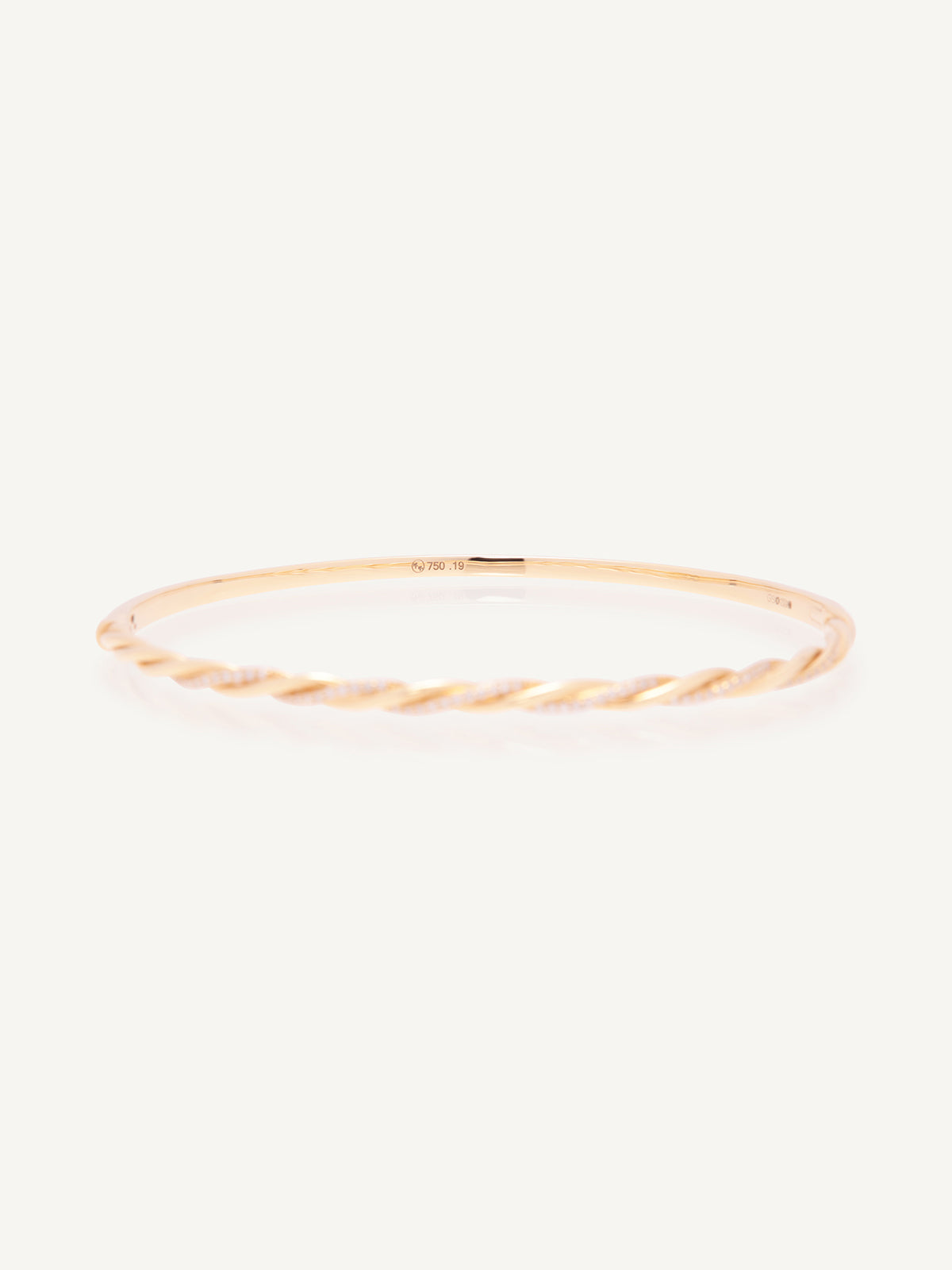 This 18ct yellow gold bangle features a unique alternating twist design, with one row grain set with sparkling diamonds for a striking contrast.