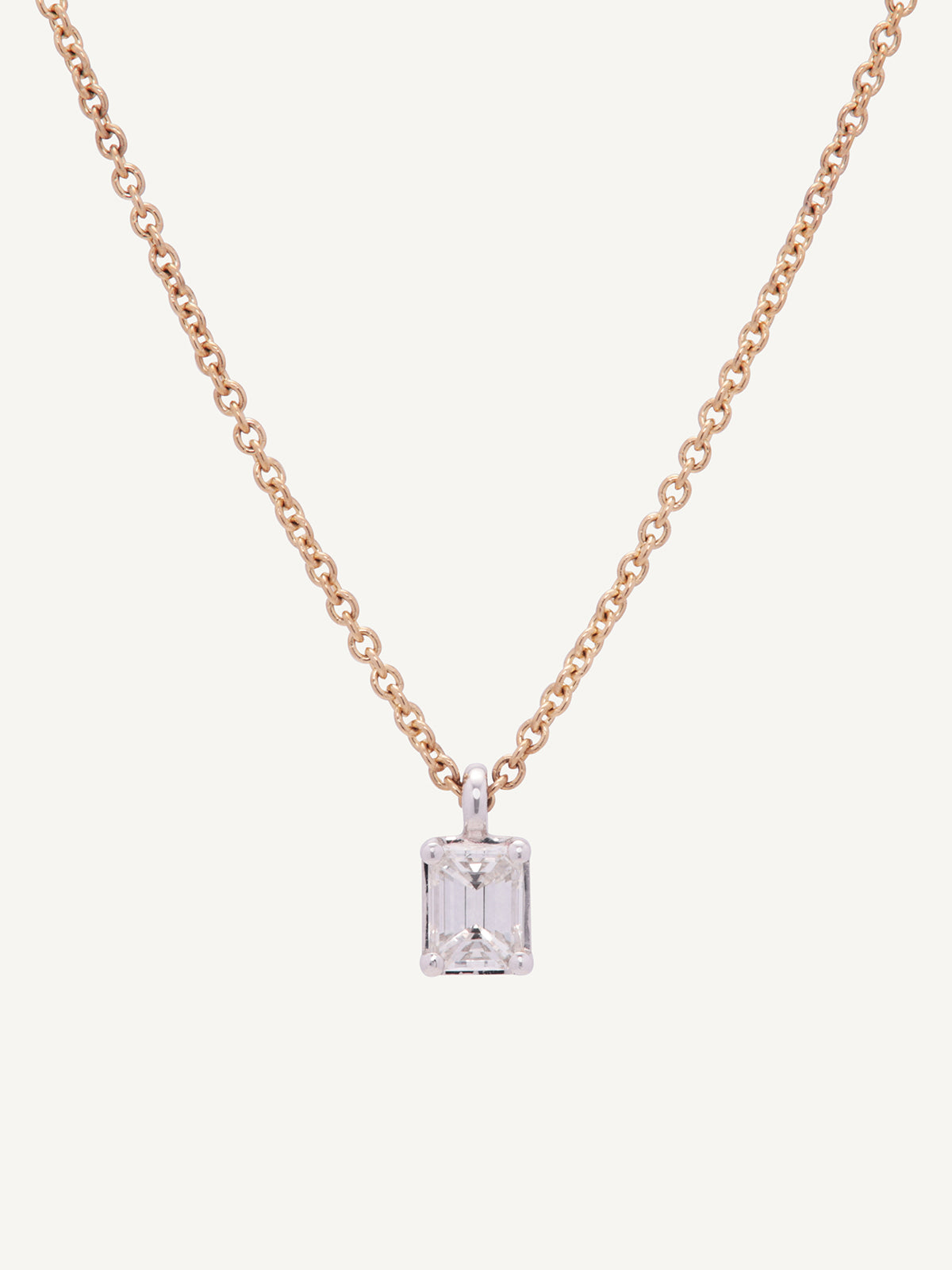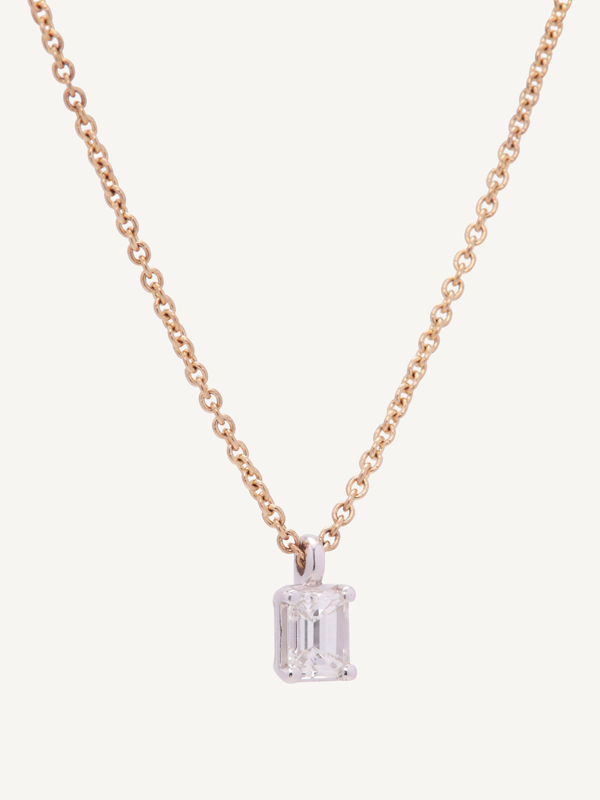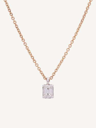 Expertly crafted in 18ct yellow gold, this necklace showcases a stunning solitaire emerald cut natural diamond pendant. Beautifully set in a white gold classic claw setting, the diamond takes centre stage.