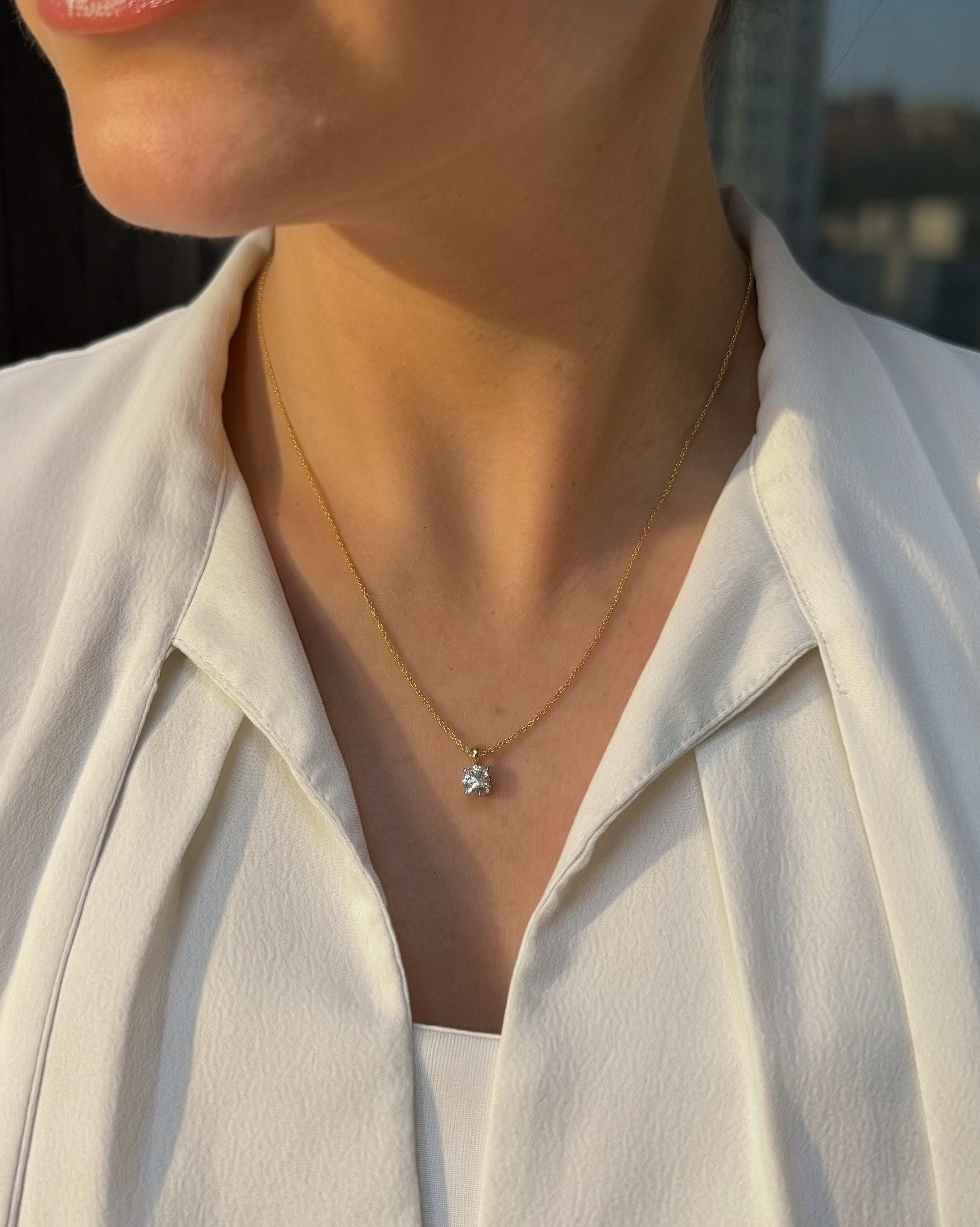 18ct yellow gold claw set diamond solitaire necklace - 1.01ct
