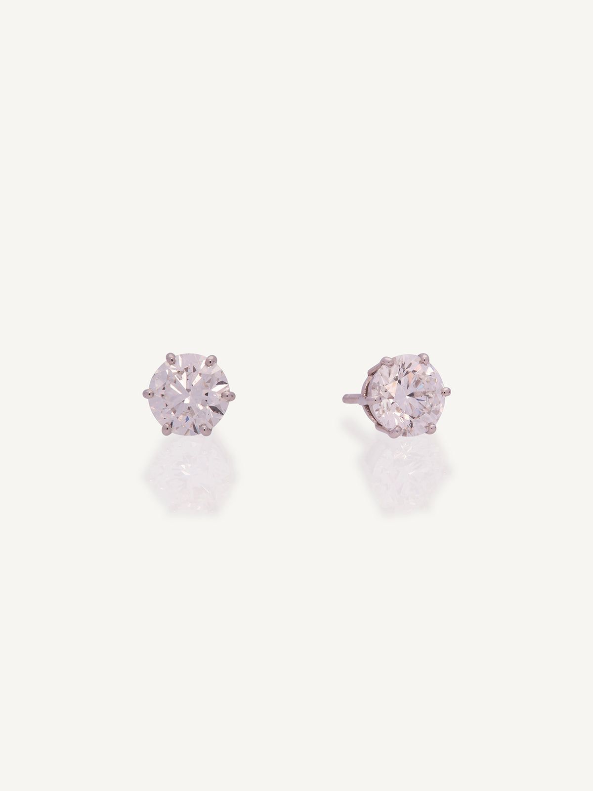 Set in 18ct white gold, these GIA certified classic six claw round brilliant 4.03ct diamond set studs are the perfect accessory for both casual and formal occasions.