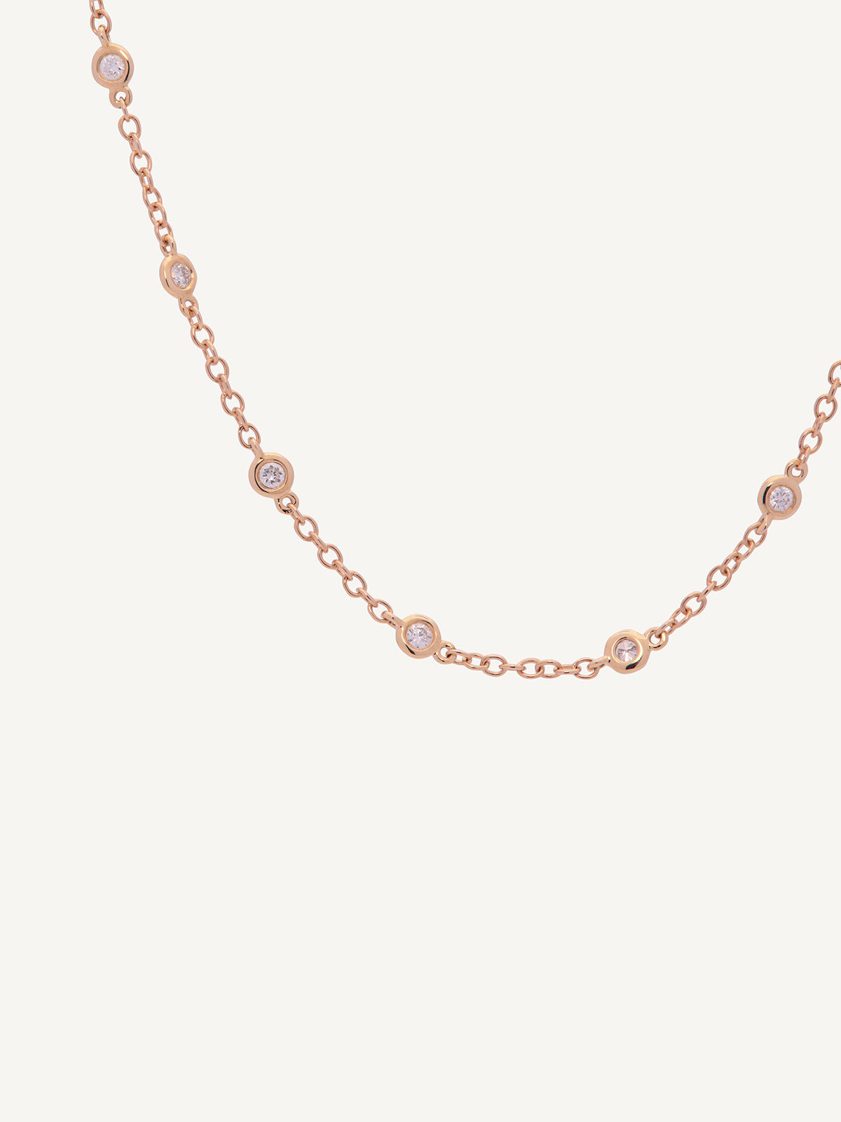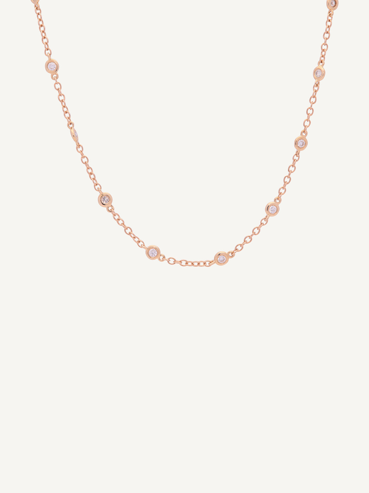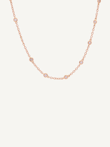 18ct yellow gold rub over scatter necklace - 0.23ct