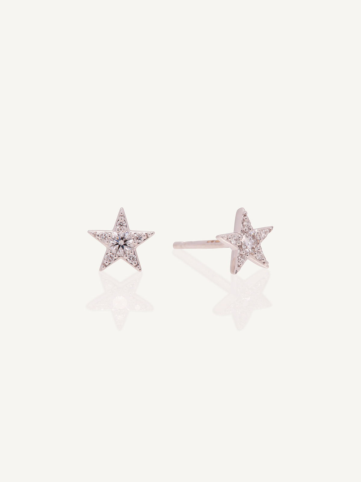 These 18ct white gold star studs feature a classic five-point silhouette and claw set diamond design.