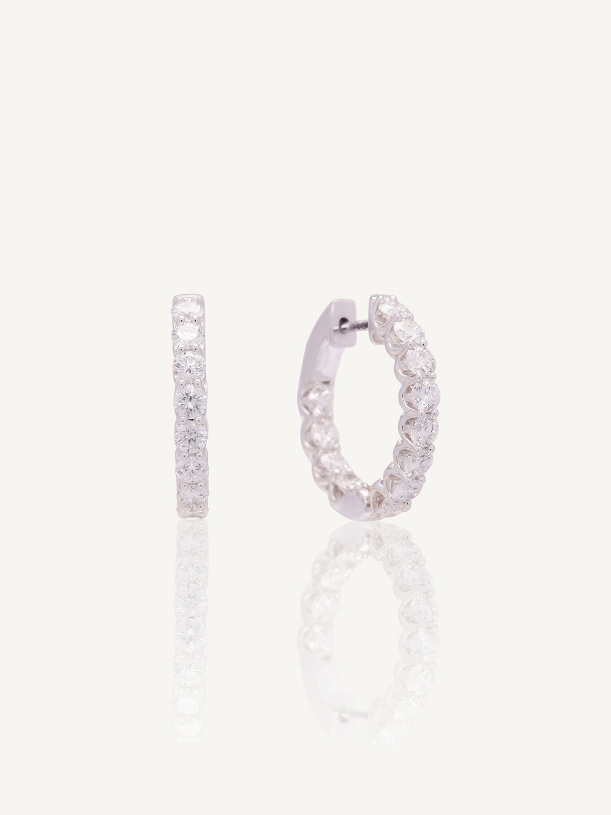 The most beautiful pair of eye catching, claw set diamond hoops. With diamonds also set at the back of these hoops, every movement sparkles. Described as an 'eternity ring for each ear', these are the perfect gift!