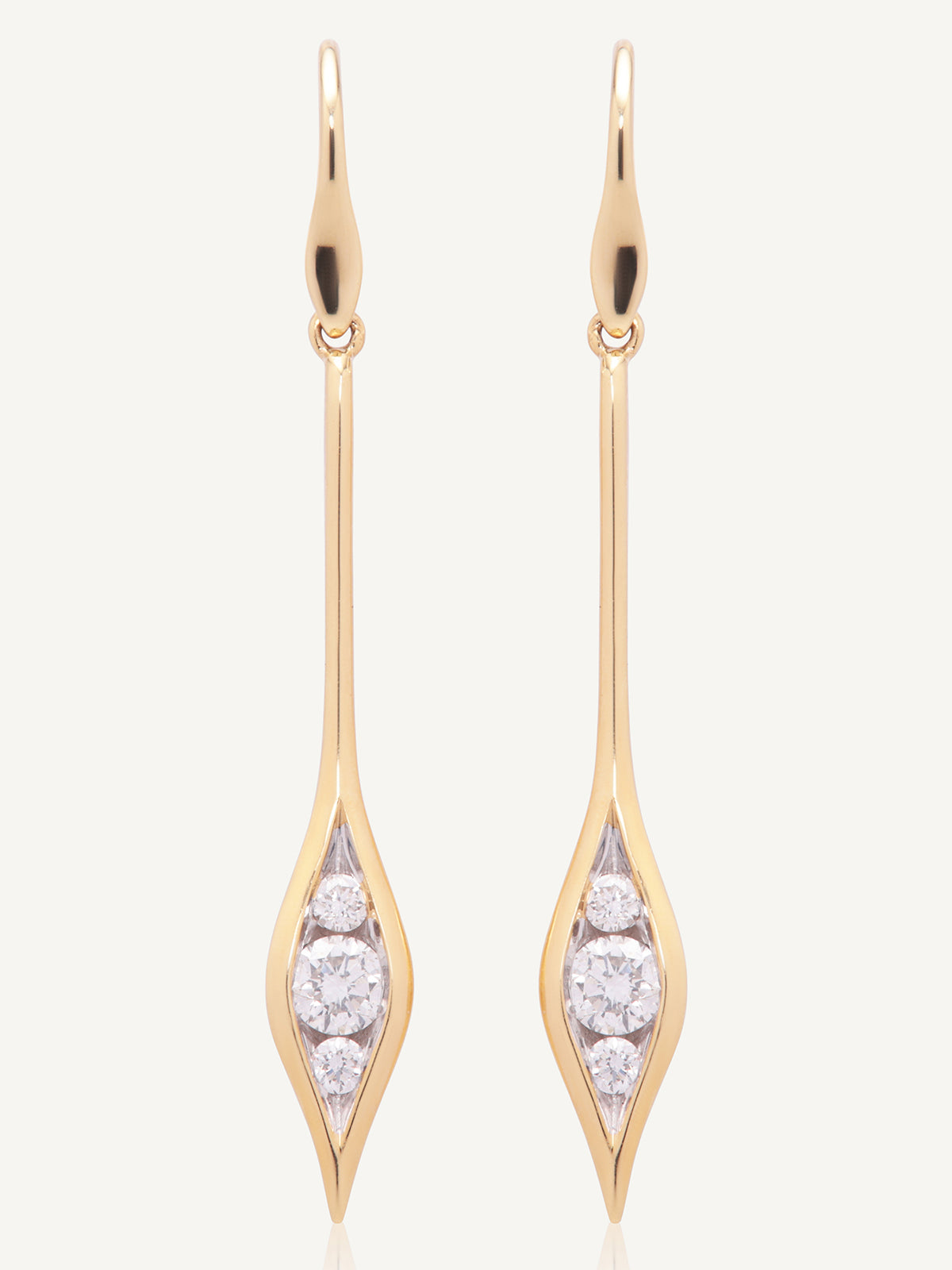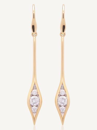 These elegant 18ct yellow gold drop earrings feature three striking round cut diamonds. The perfect finishing touch to an outfit.