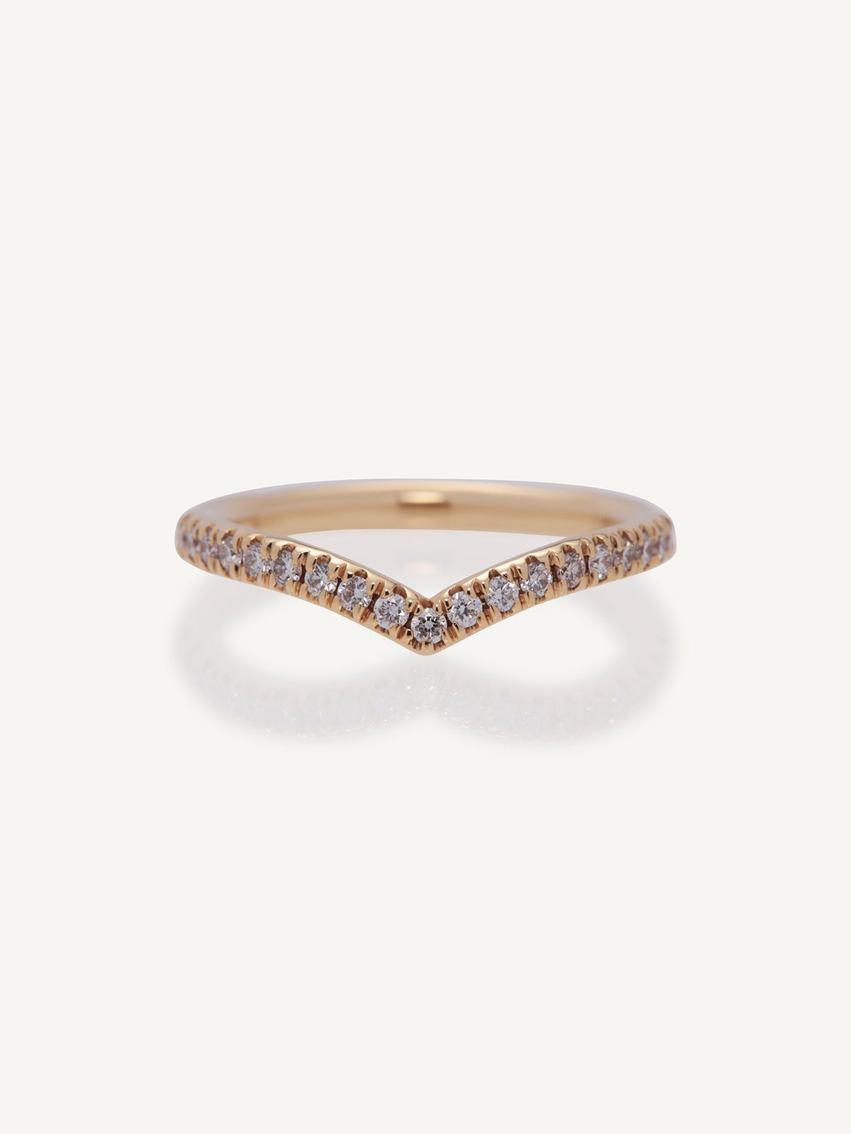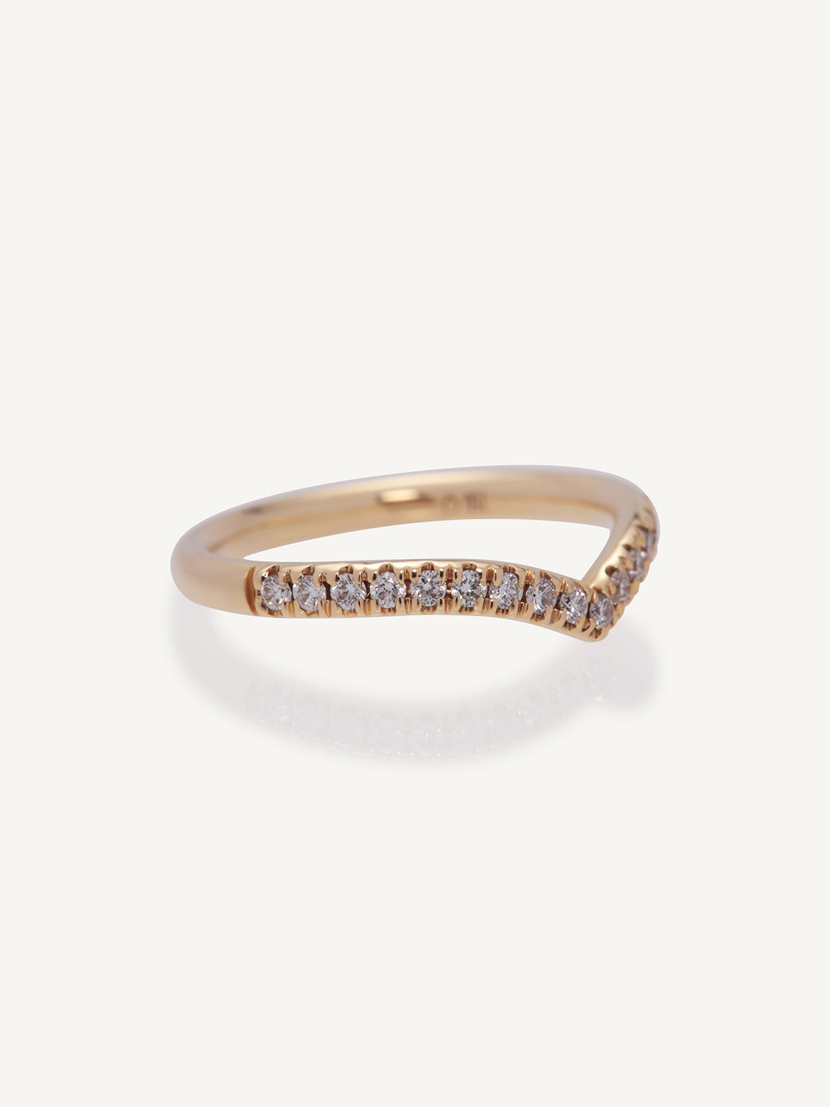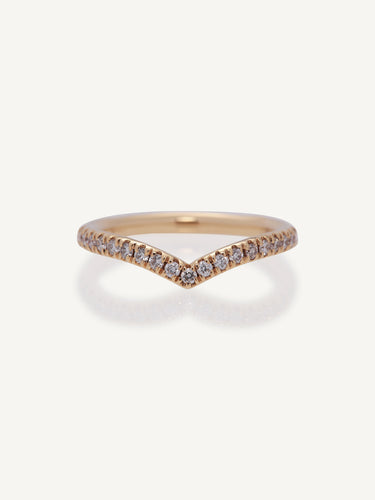 This beautiful wishbone ring is a perfect statement 1/2 eternity band featuring micro claw set round brilliant diamonds. It can be worn as a shaped wedding band, a stacking ring or on its own.