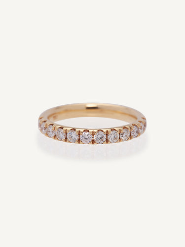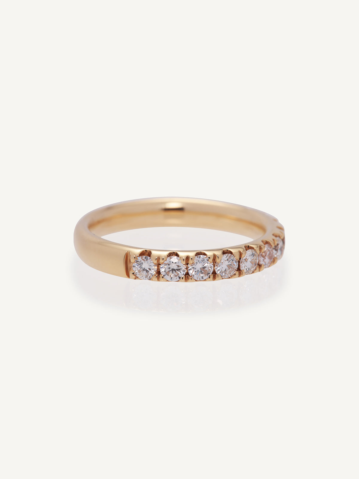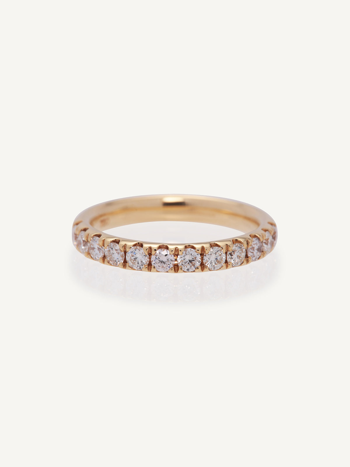 This stunning ½ eternity band features micro claw set diamonds. This ring will compliment any engagement ring and still looks just as beautiful worn solo as a wedding band or as a celebration of love.