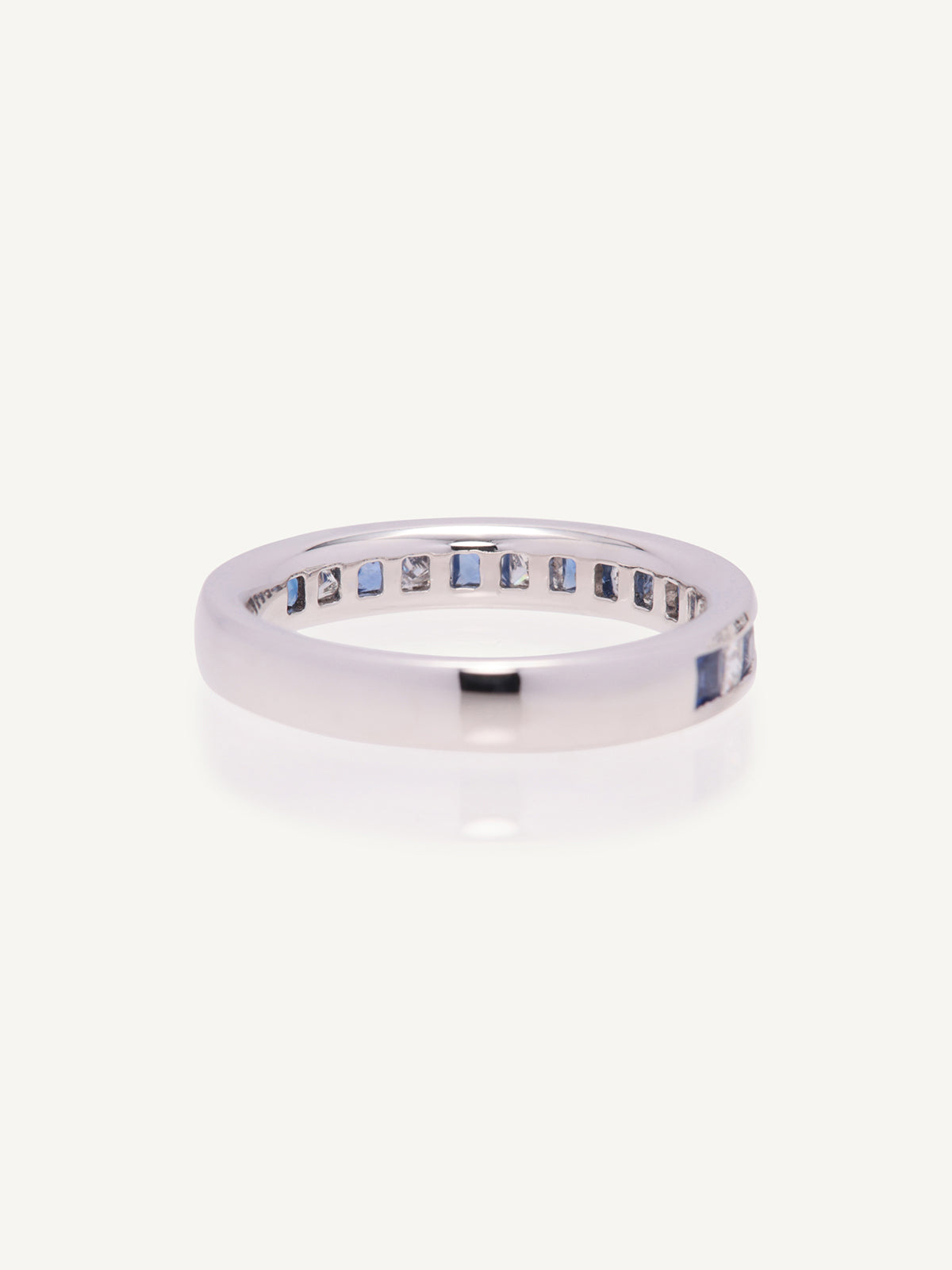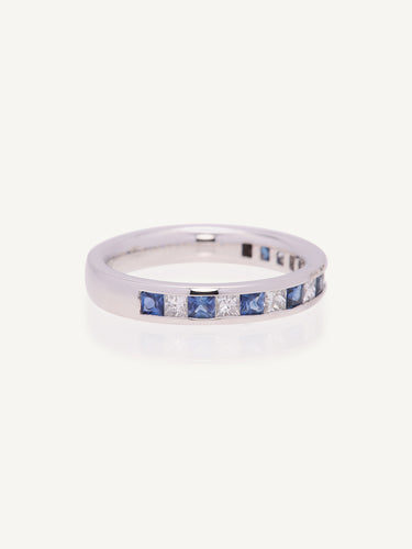 Platinum princess cut sapphire and diamond channel set 1/2 eternity ring
