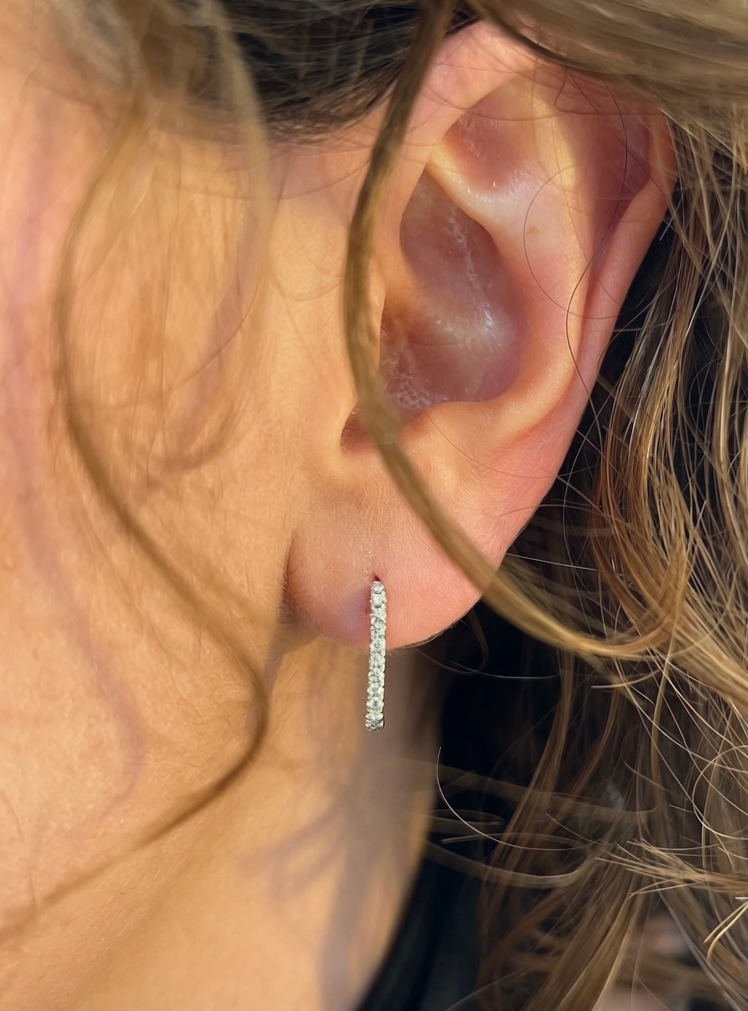 Oval huggie hoops with micro claw set round brilliant cut diamonds for the perfect touch of sparkle.