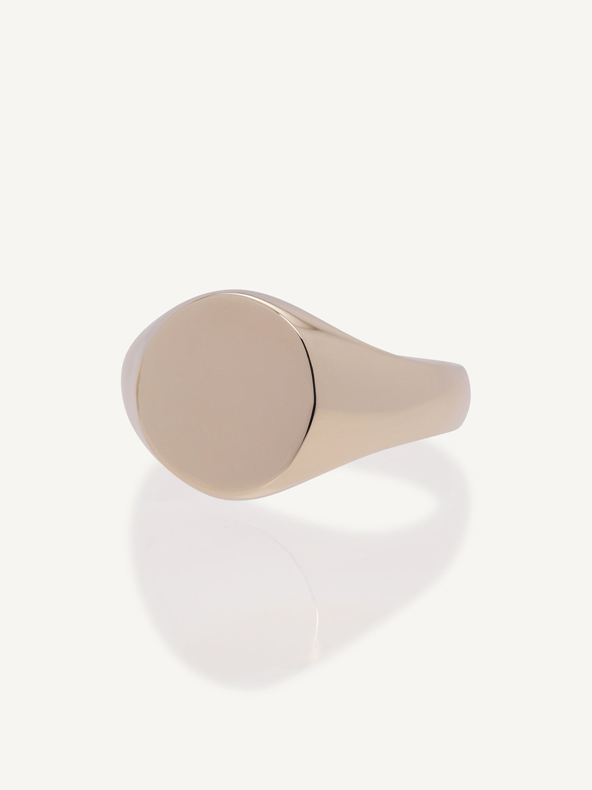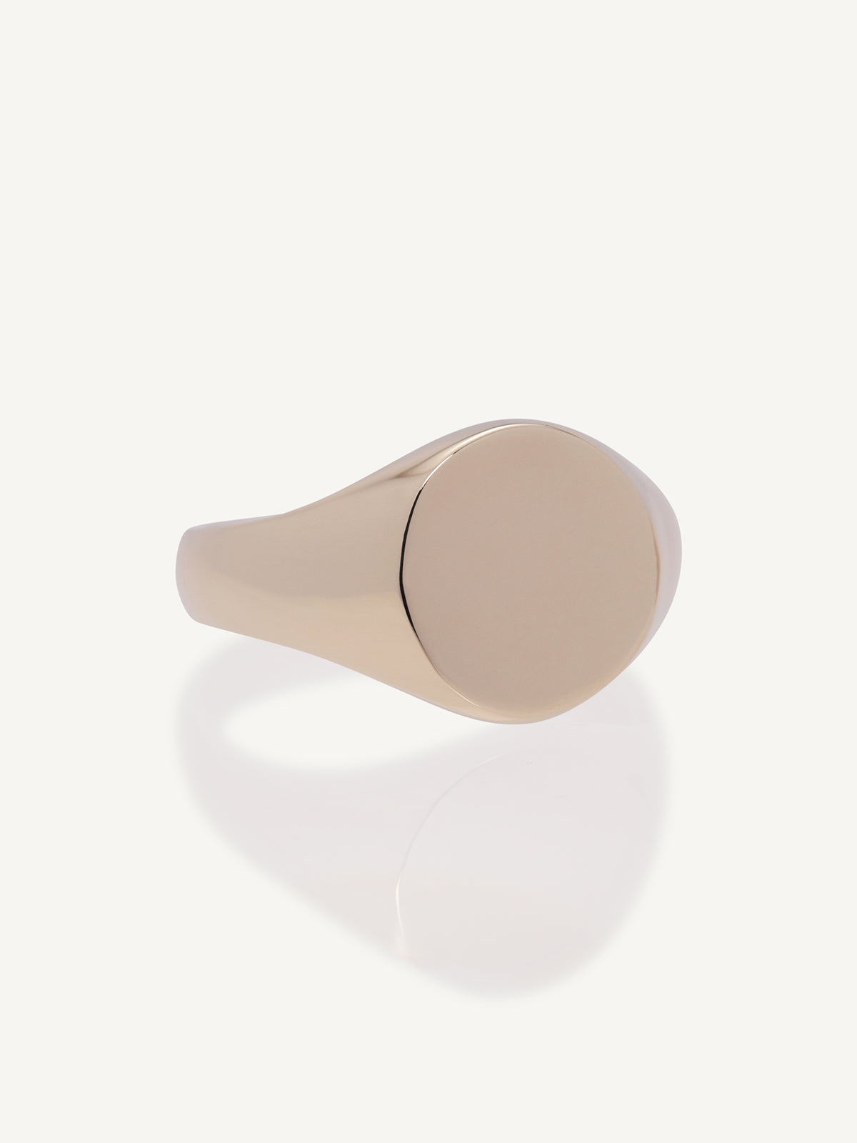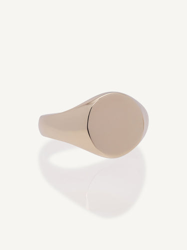 Lanes 9ct yellow gold oval 12x10mm signet ring, beautifully hand-finished. Available in any finger size. Perfect for seal engraving or hand engraved initials.