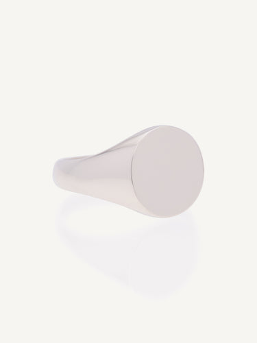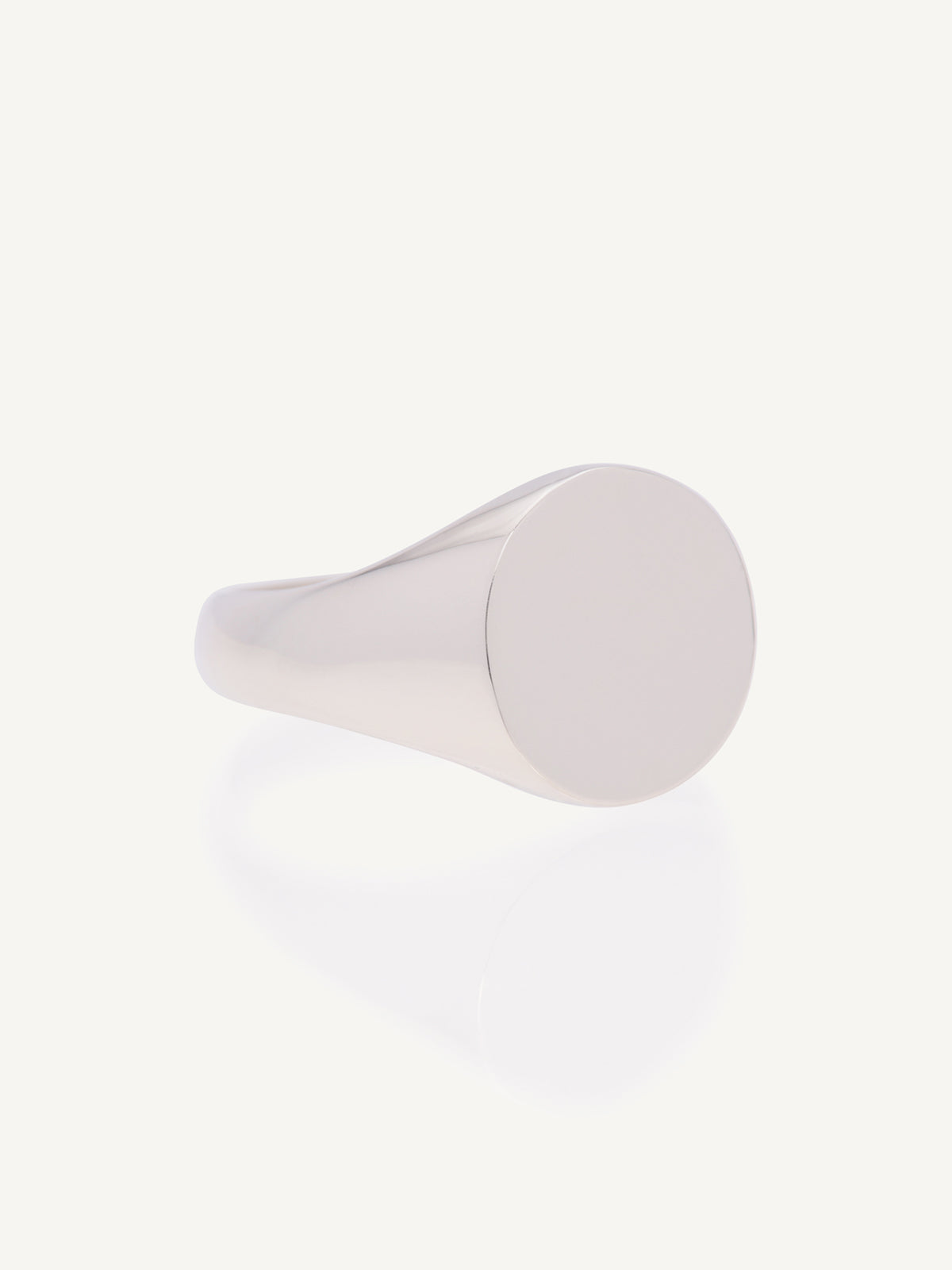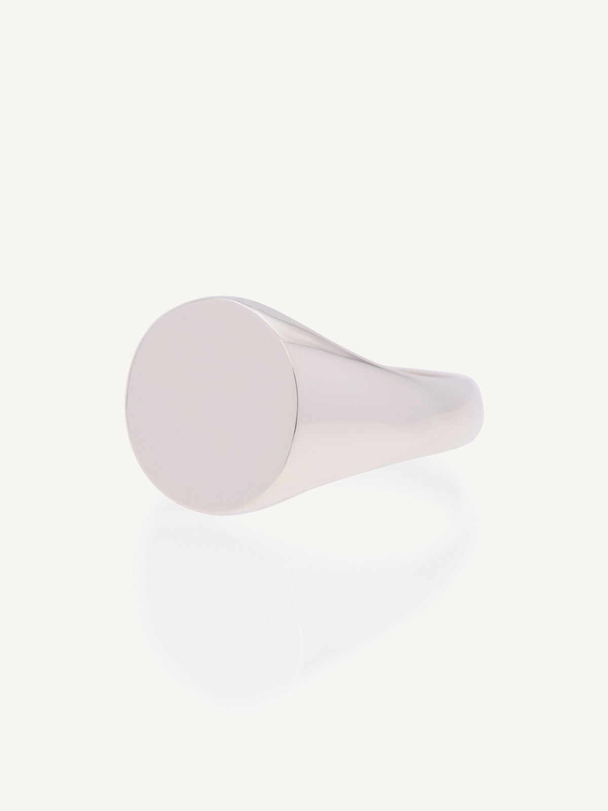 Lanes ladies 9ct white oval 12x10mm medium signet ring, beautifully hand-finished. Available in any finger size. Perfect for seal engraving or hand engraved initials.