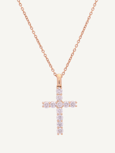 Crafted in 18ct yellow gold, this round brilliant claw set diamond set cross is paired with a 20" trace chain, offering a refined and discreet look.