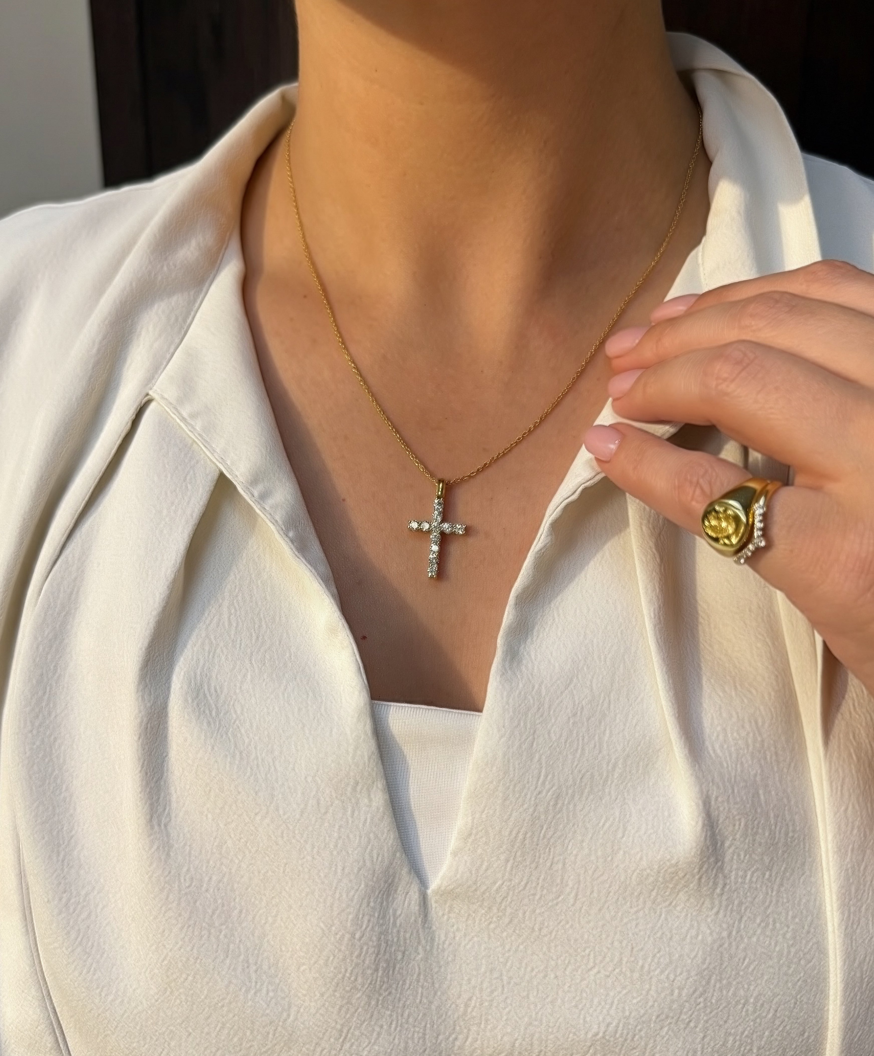 18ct yellow gold diamond set cross pendant necklace