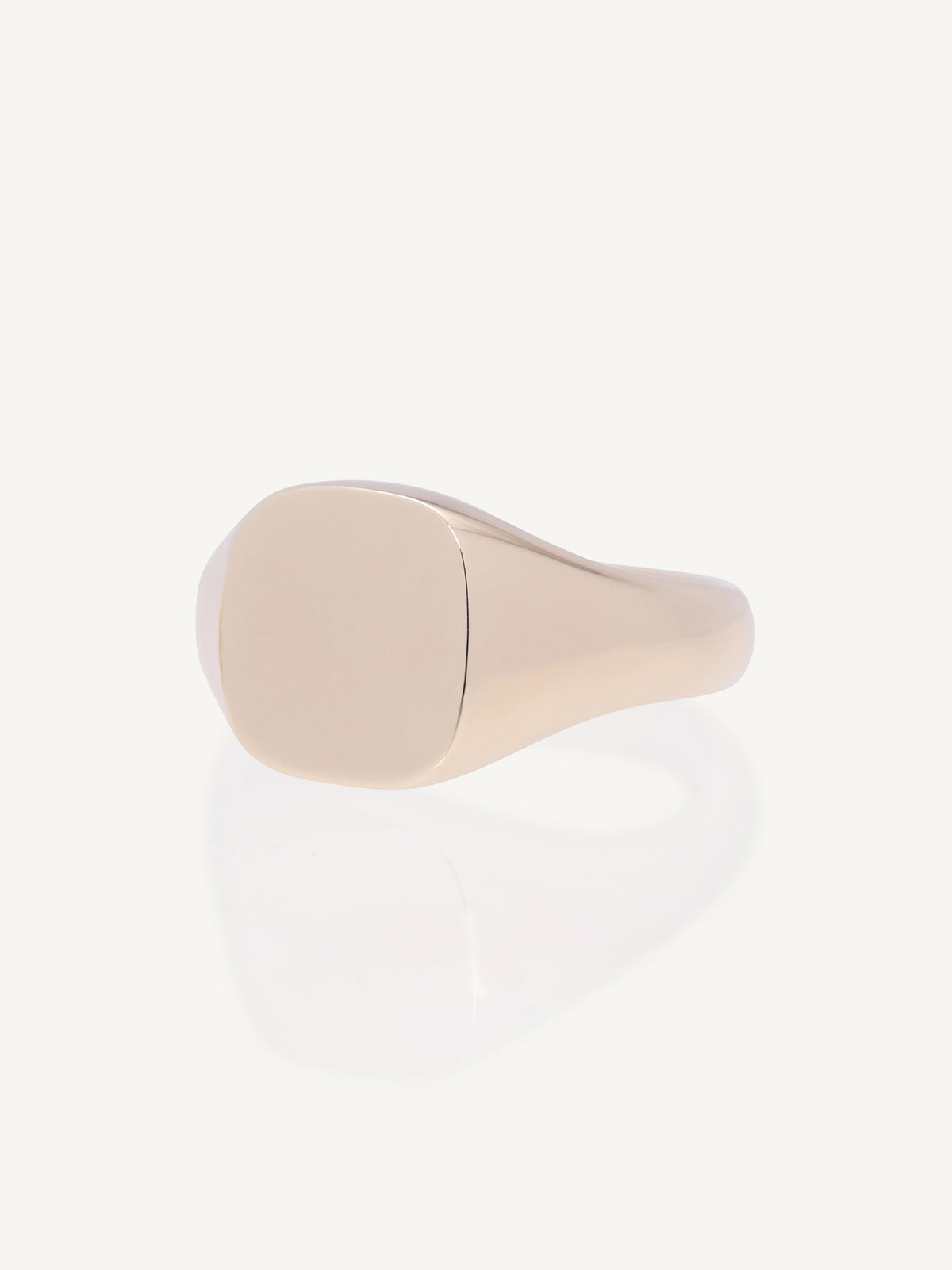 Lanes 9ct yellow gold cushion 13x12mm signet ring, beautifully hand-finished. Available in any finger size and other precious metals. Perfect for seal engraving or hand engraved initials.