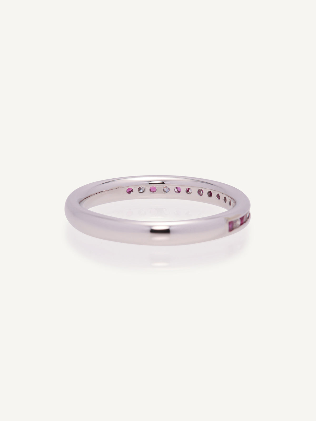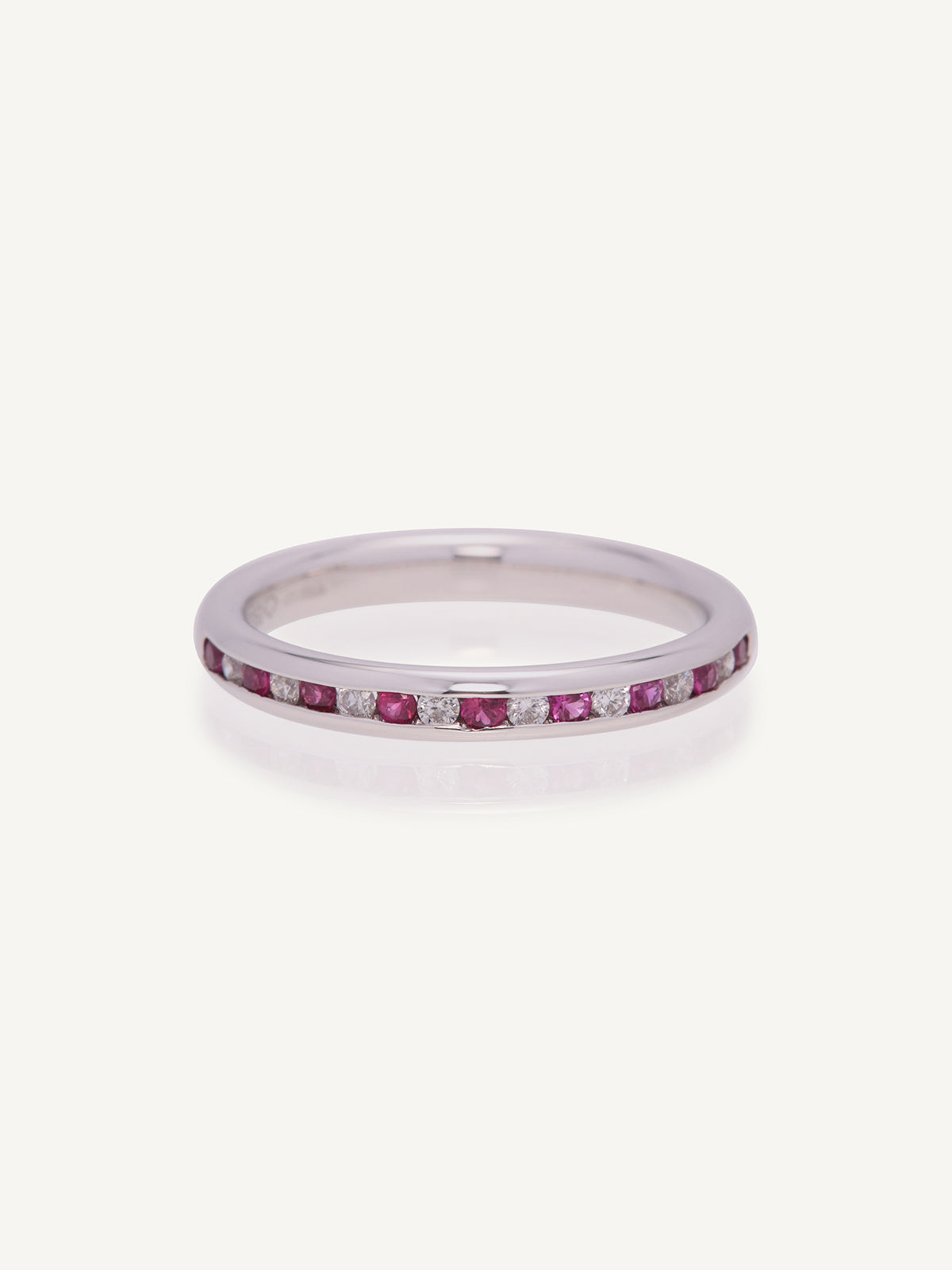 Vibrant rubies and diamonds, channel set in beautiful platinum. The perfect pop of colour for any jewellery collection.