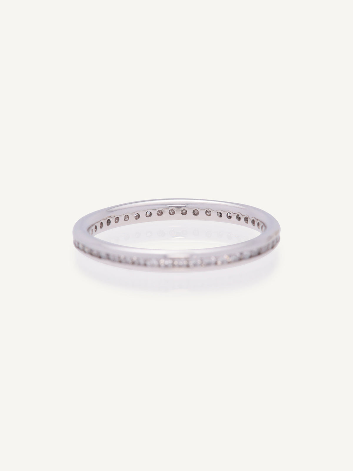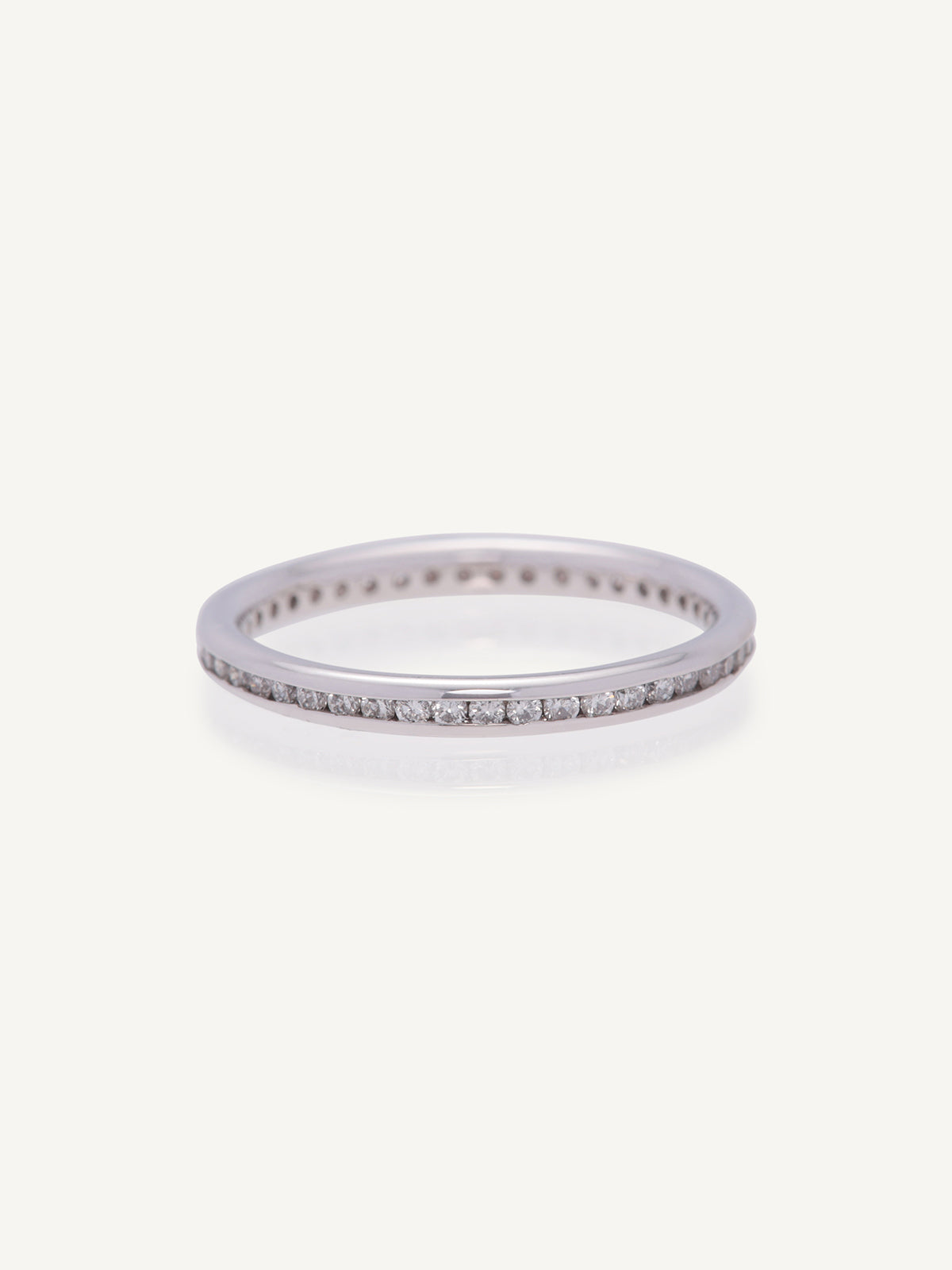 A timeless full eternity ring featuring 0.35ct of round brilliant natural diamonds in a sleek channel setting, crafted in platinum for an elegant and modern look.