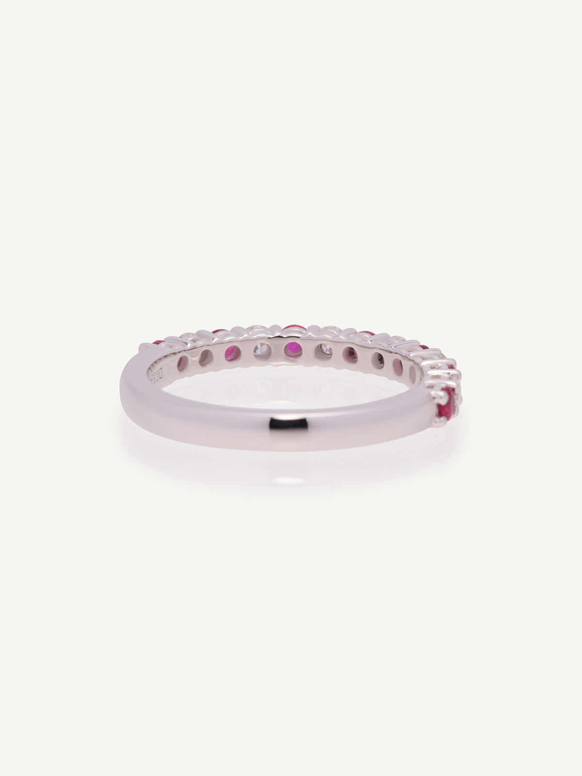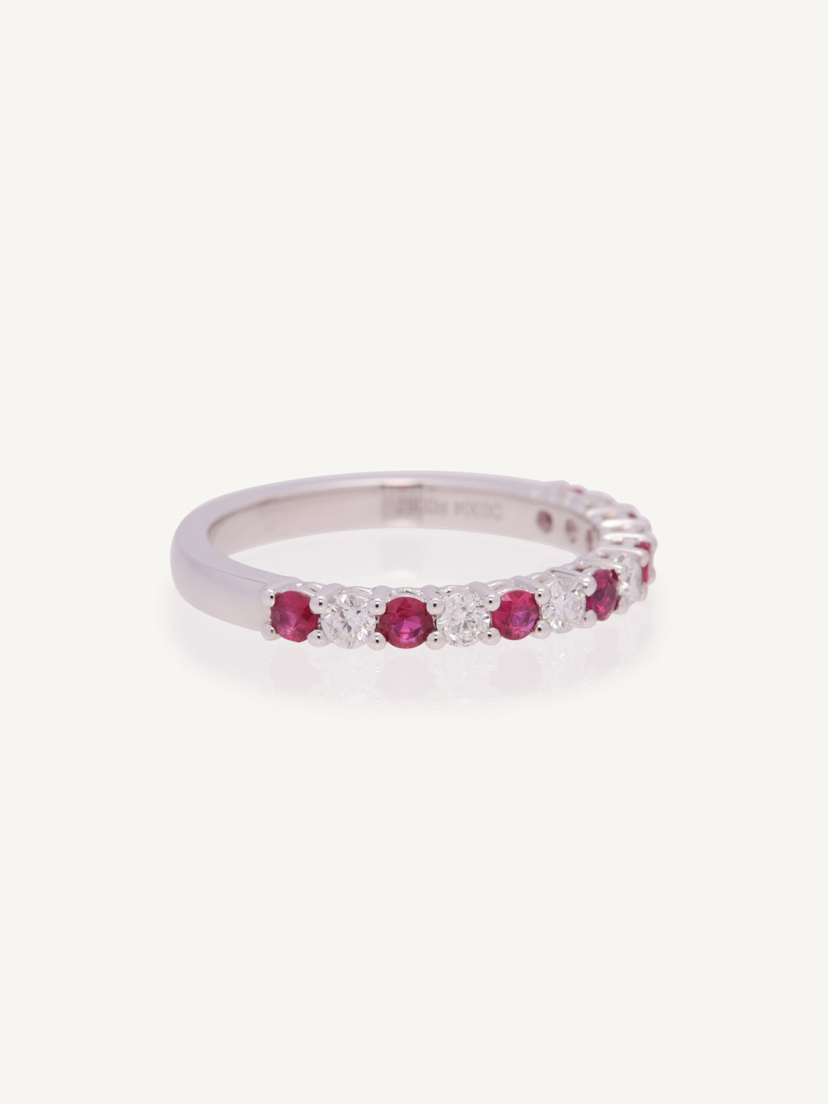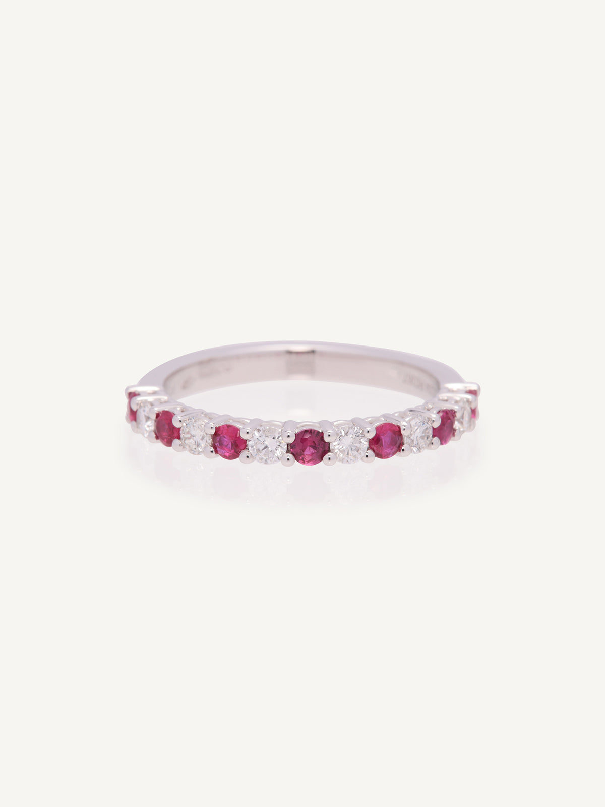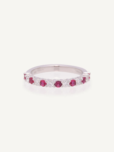 Platinum ruby and diamond shared claw set 1/2 eternity ring