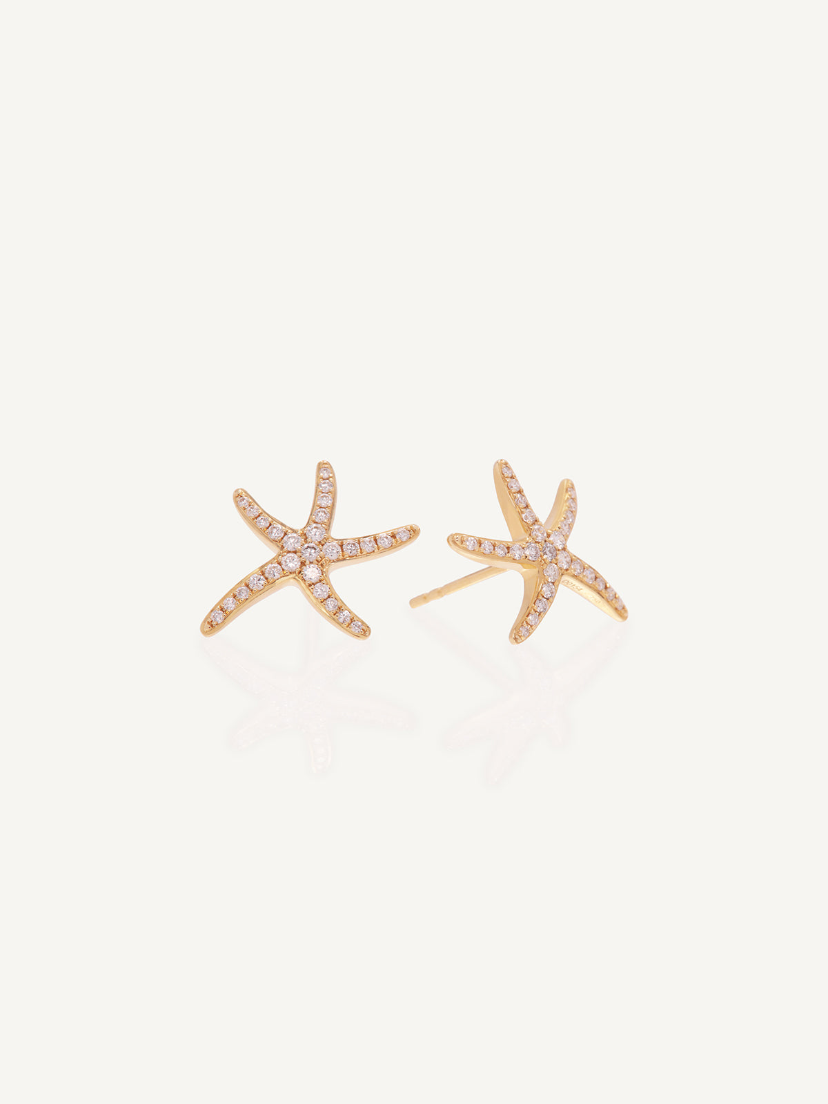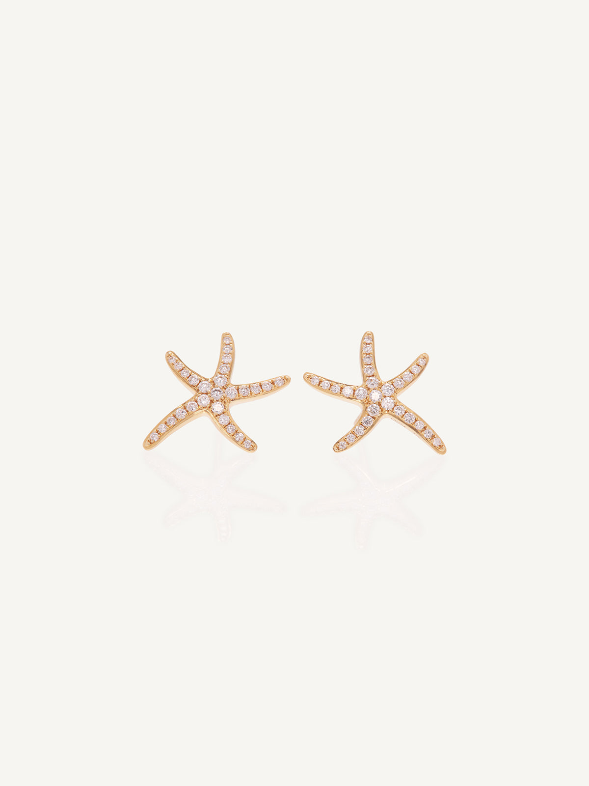 The earring of the moment, these 18ct yellow gold diamond set starfish ear studs are the perfect summer accessory.