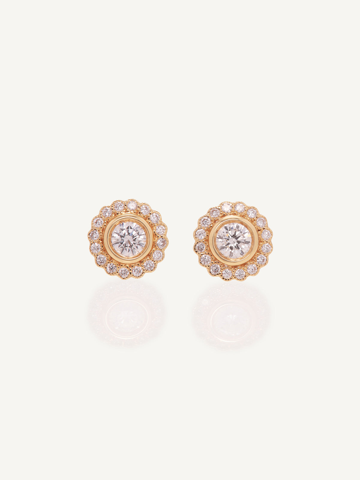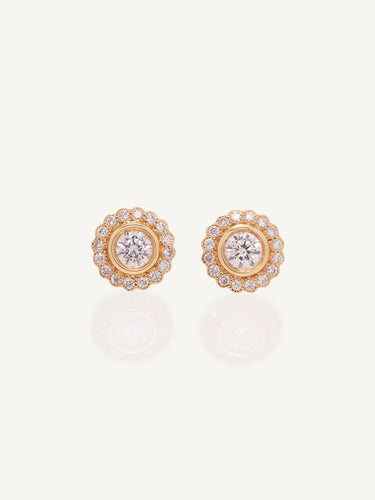 18ct yellow gold rub over set centre diamond cluster ear studs
