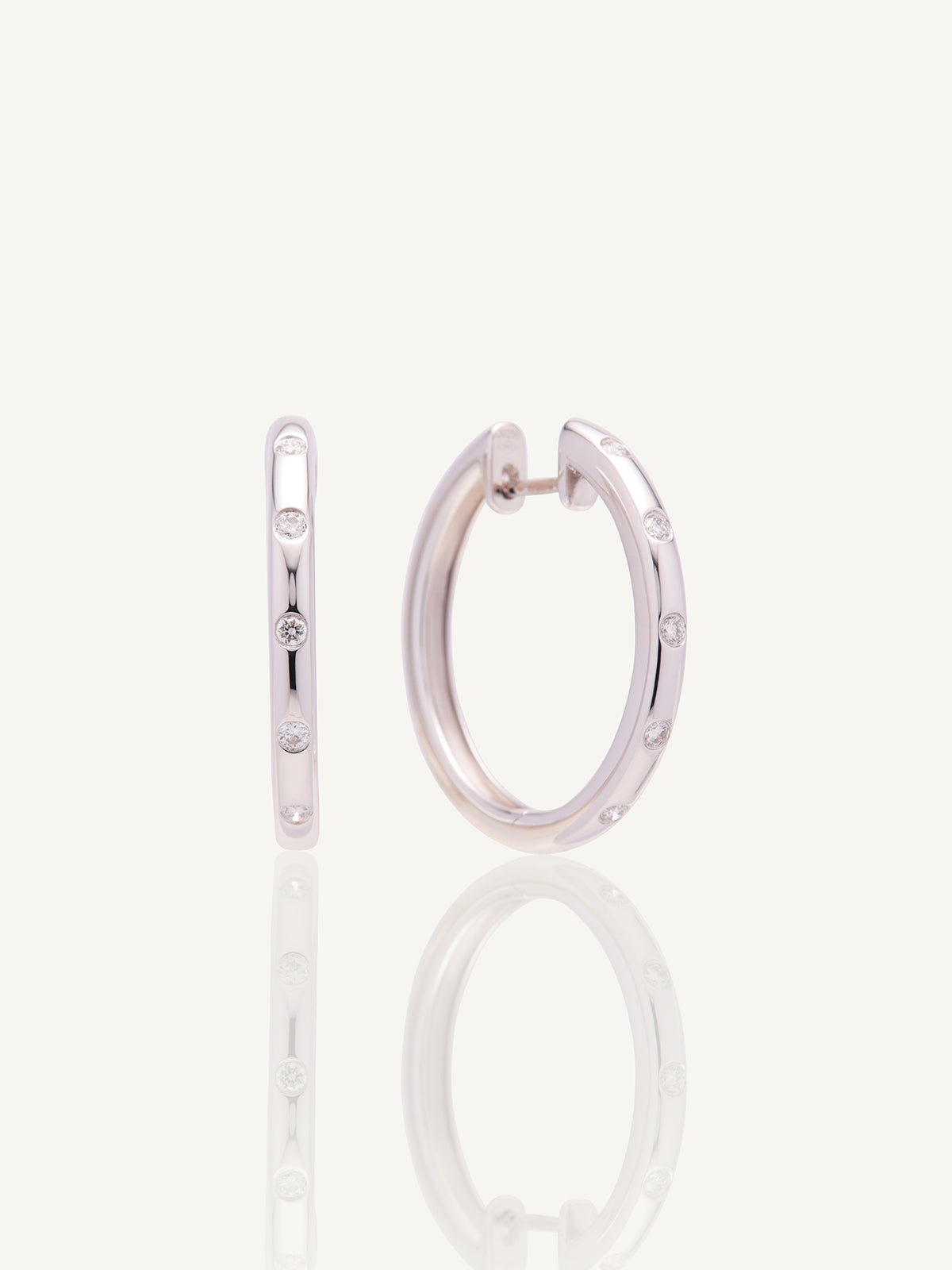 Make a statement with these beautiful chunky 18ct white gold flush set diamond set hoops.