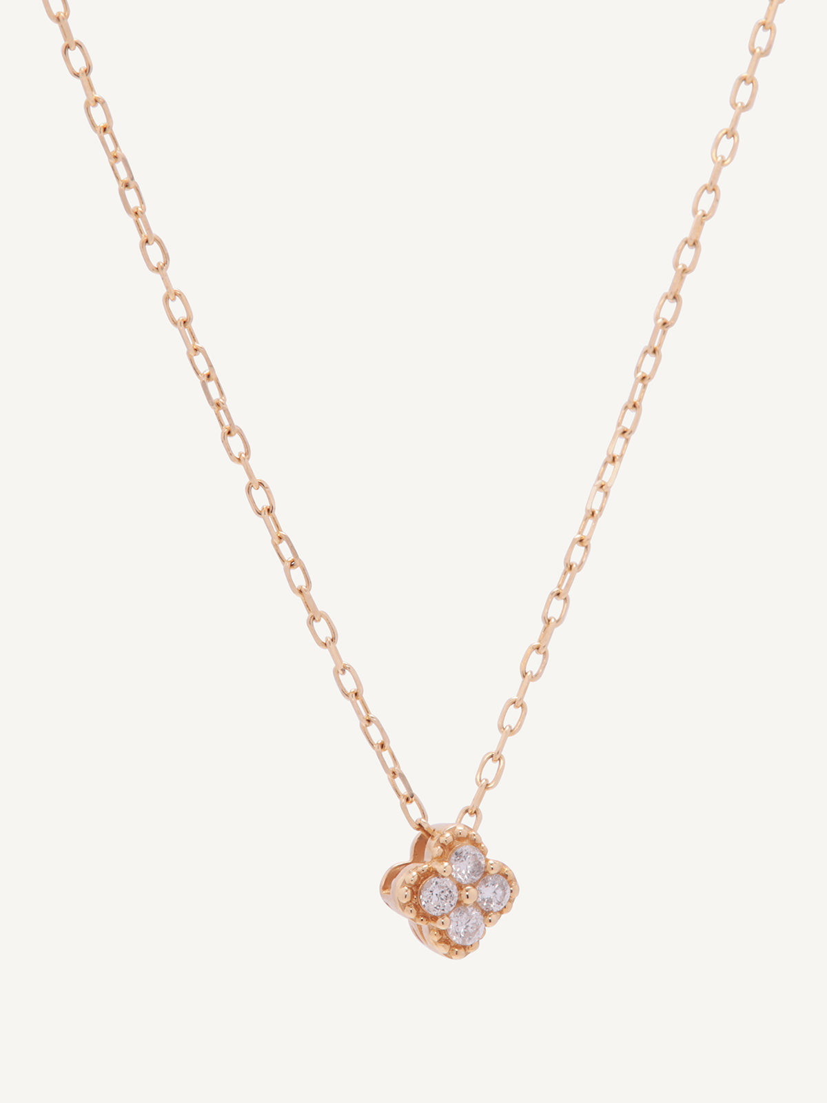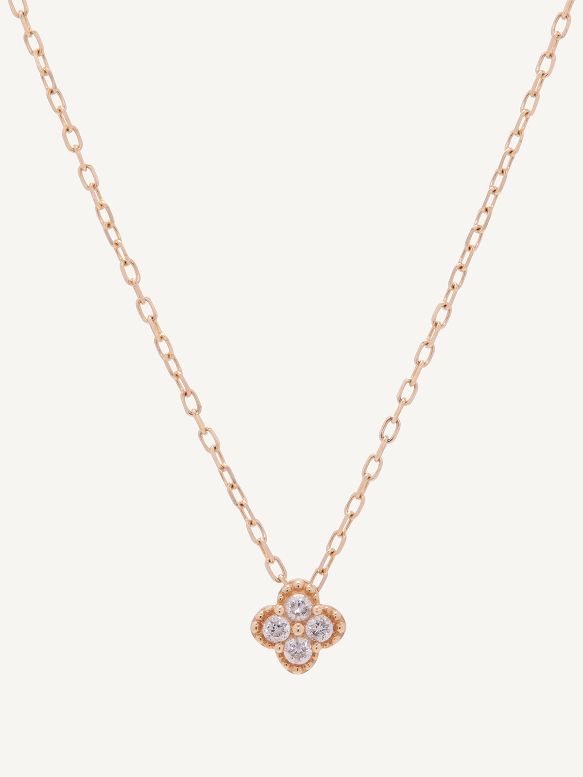This 18ct yellow gold clover pendant features a refined grain set diamond design that sparkles with understated luxury. A talisman of luck, fortune and love.