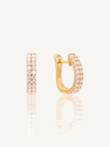 Set in 18ct yellow gold, these huggie hoops feature two rows of beautiful pave set diamonds for a refined sparkle.