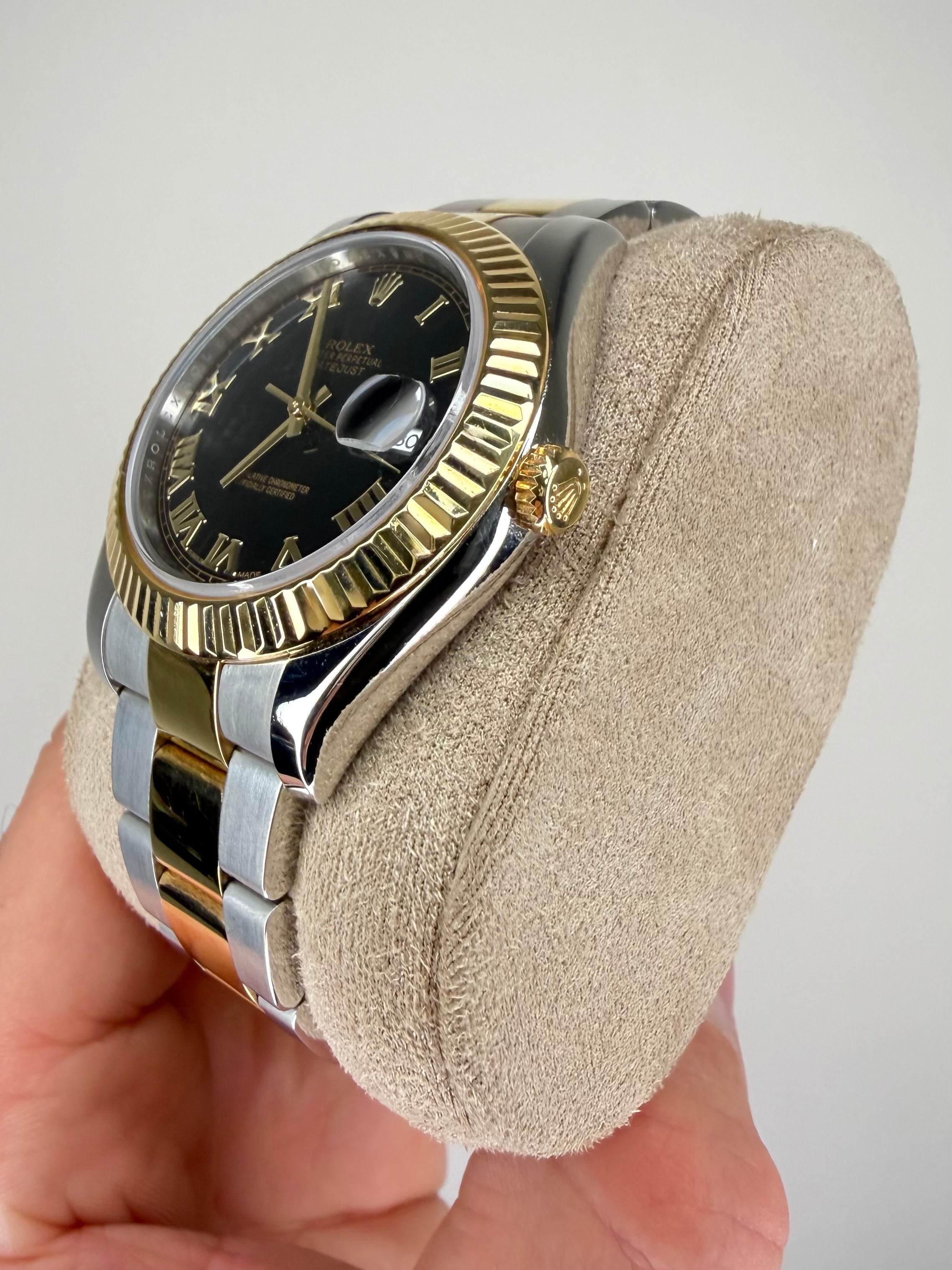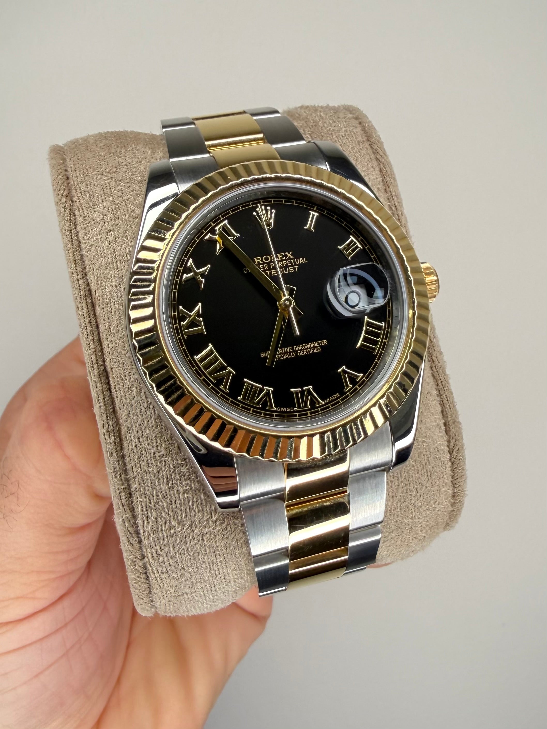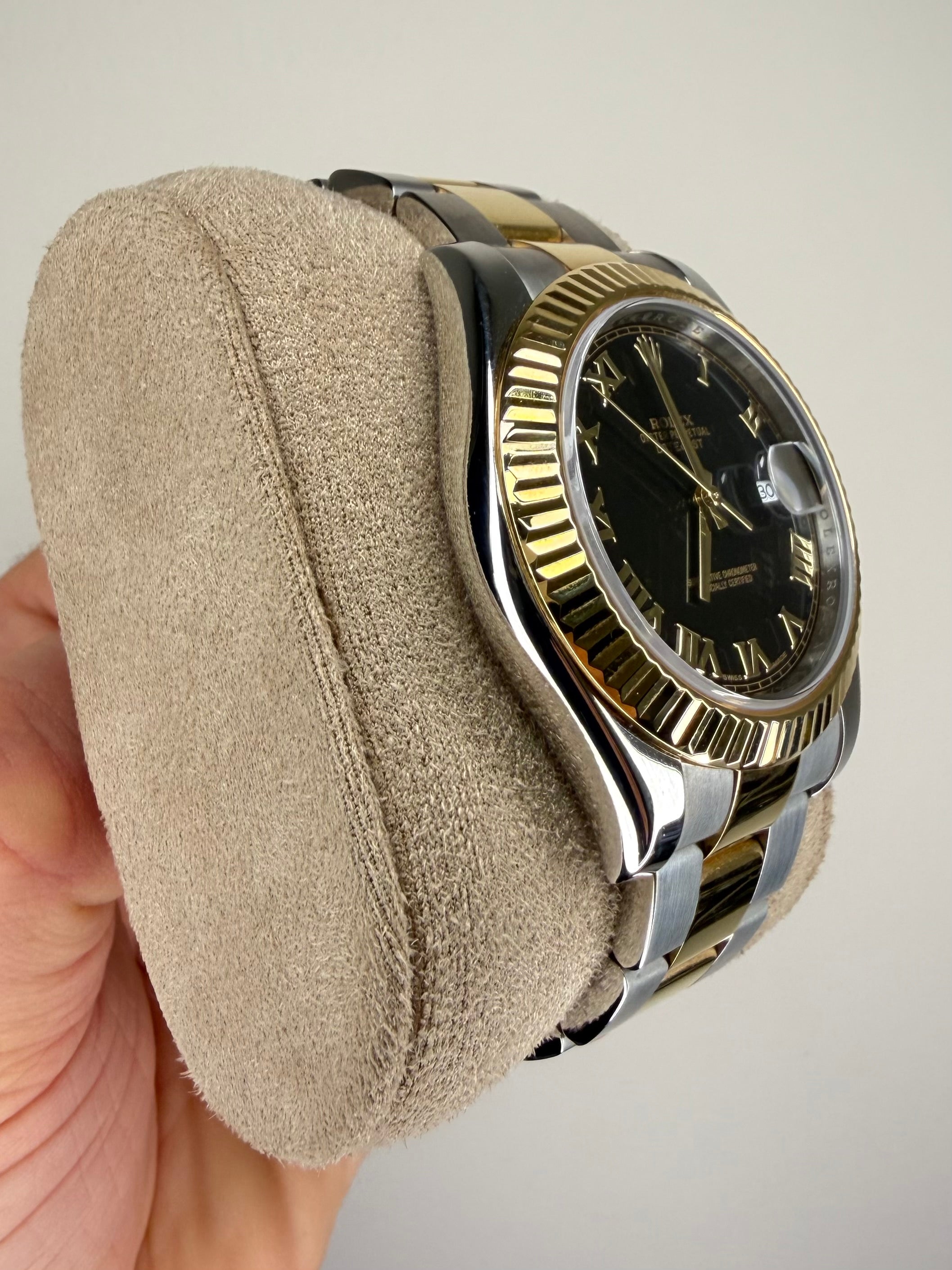Rolex Datejust 2 watch in stainless steel and 18ct yellow gold, model number 116333. 41mm case, black Roman dial with date aperture at 3 o'clock, Fluted bezel, Oyster bracelet. Accompanied with a full set - Rolex box and guarantee card dated November 2015. Lanes pre-owned watches are accompanied with a full 12 month warranty. If you require any further information, please do not hesitate to contact our helpful team.
