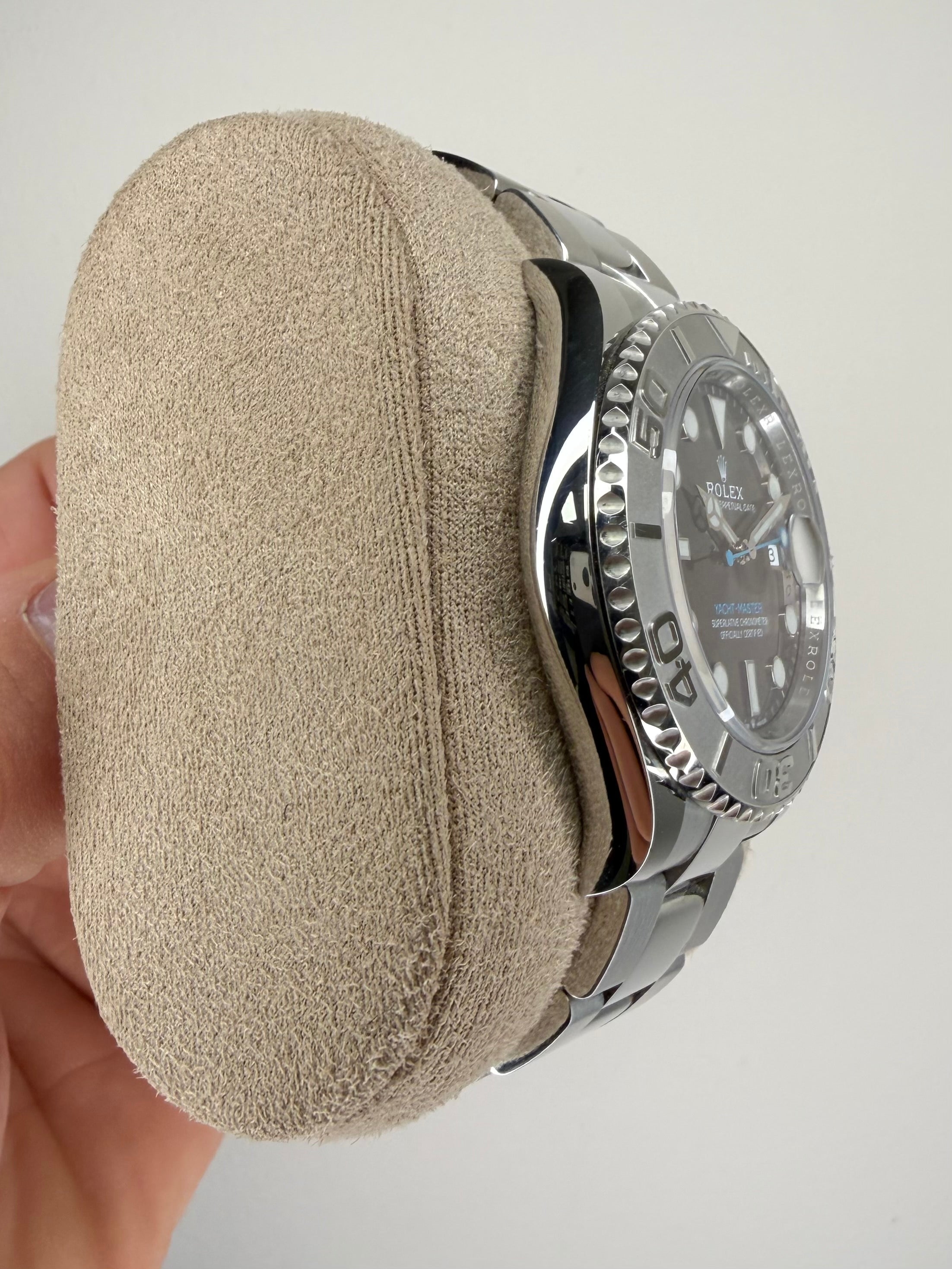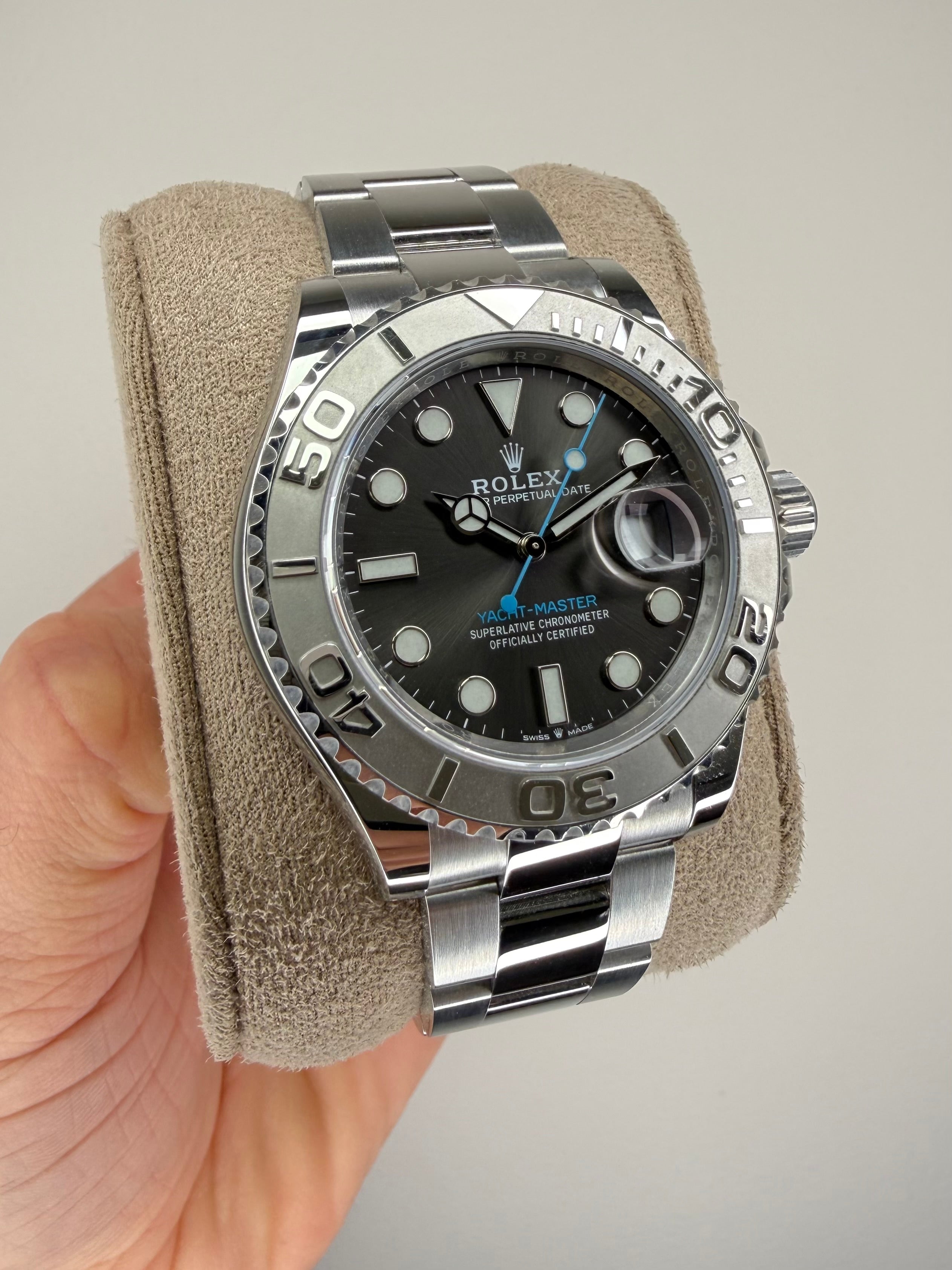 Rolex Yacht-Master 40, model reference 126622. 40mm stainless steel case, rhodium dial with date aperture at 3 o'clock, light blue second hand, sapphire crystal, platinum bezel, automatic movement, Oyster bracelet. Accompanied with a full set - Rolex box, guarantee card dated 2022, booklet, green wallet, x2 swing tags. This watch is under manufacturer warranty until 2027. If you require any further information, please do not hesitate to contact our helpful team.