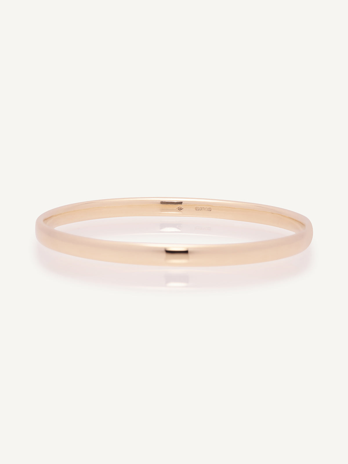 A beautiful 5.50mm x 2.60mm 9ct yellow gold oval section solid bangle. Guarenteed to become one of your staple jewellery items, this classic piece is both timeless, and elegant.